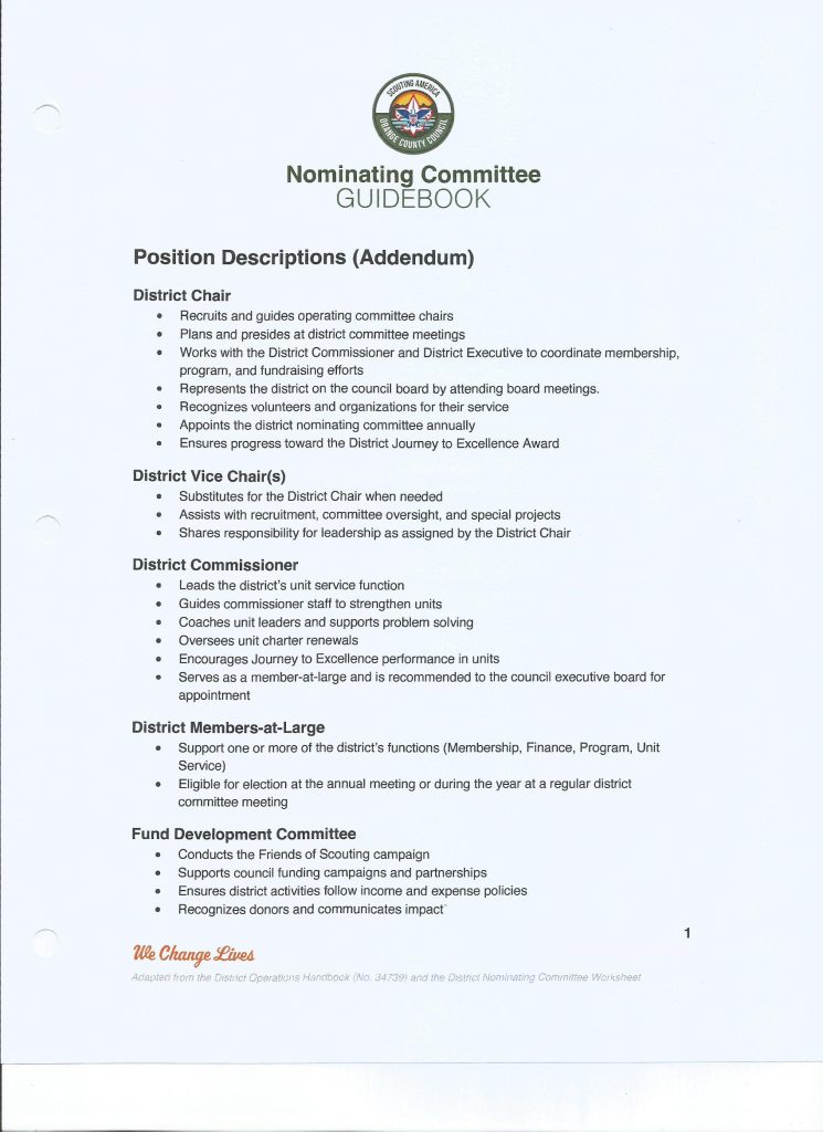 Attached summary of what the District Committee positions looks like and a brief description of the Member-At-Large position. Please reach to Valerie Venegas if you have any questions. Contact information is by phone or text at 714-401-6971 or email at vvenegasgwc@yahoo.com.