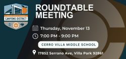 November Roundtable will be at Cerro Villa Middle School. Continue reading